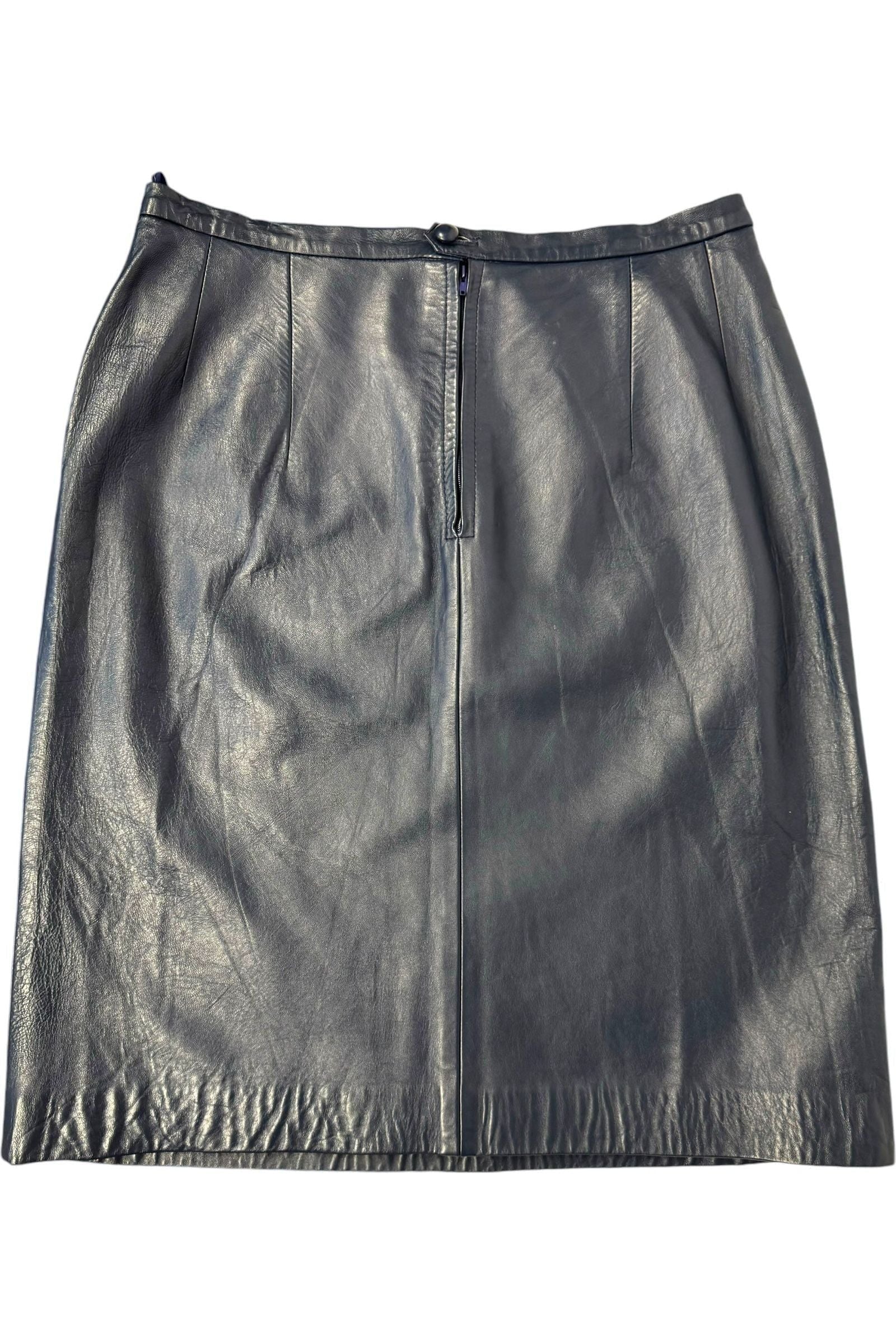 A vintage European leather skirt in a rich, deep blue, this piece carries the unmistakable sophistication of European fashion. Crafted with high-quality leather, it has a subtle sheen that catches the light beautifully. Marked with a European size 46, this skirt not only highlights its European origin but also ensures a tailored fit that embodies classic style.