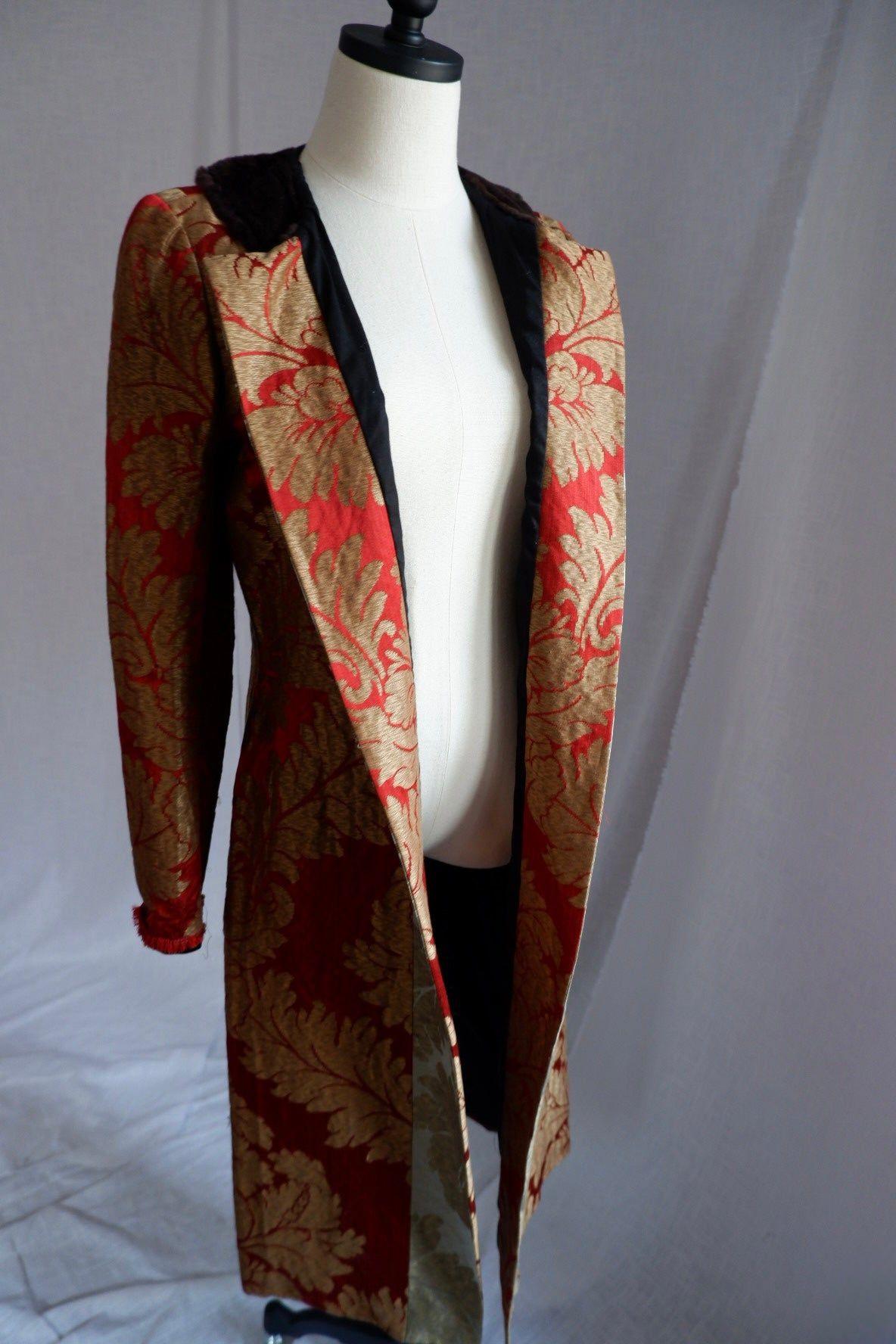 Early 2000s Red and Gold Brocade Jacket with Shearling Collar S/M
