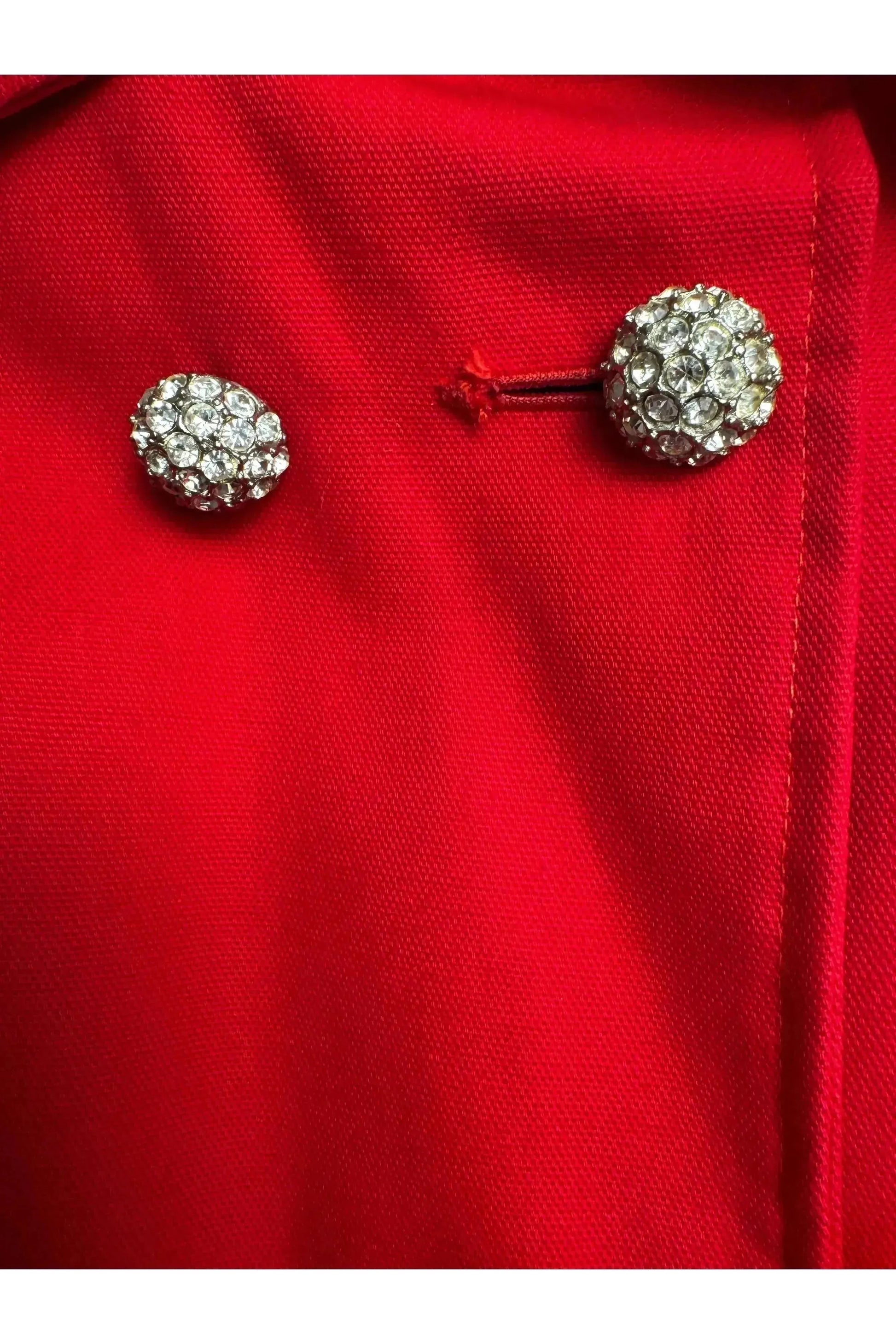 1960s Vintage Red Jolee New York Double-Breasted Jacket with Rhinestone Buttons S